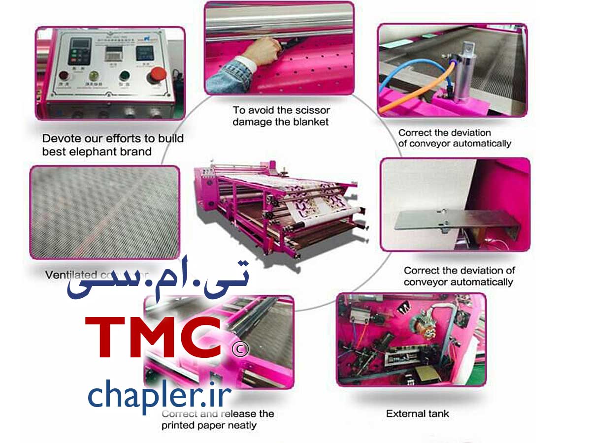 ​این دستگاه یک پرس حرارتی بسیار کارآمد و تمام عیار میباشد مینی کلندر تی ام سی دارای سلیندر تمام استیل و نمد ایتالیایی میباشد